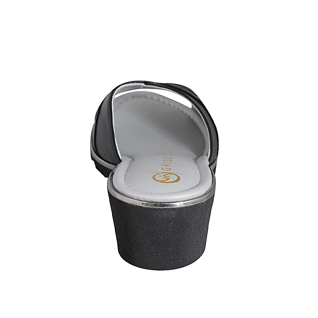 Mule pour femmes en cuir noir talon compensé 4 - Pointures disponibles:  35, 43