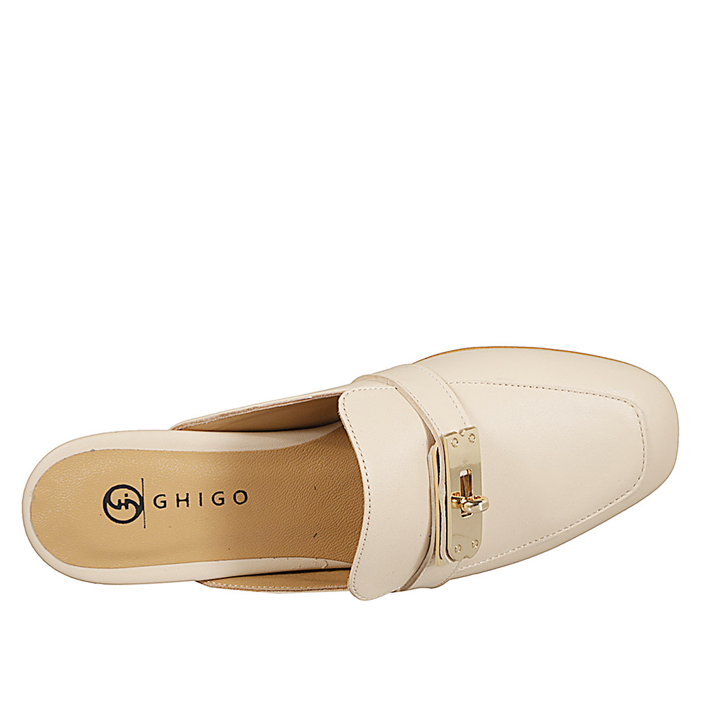 Mocassin pour femmes à bout pointu avec orné d’un accessoire en cuir noir, talon 2