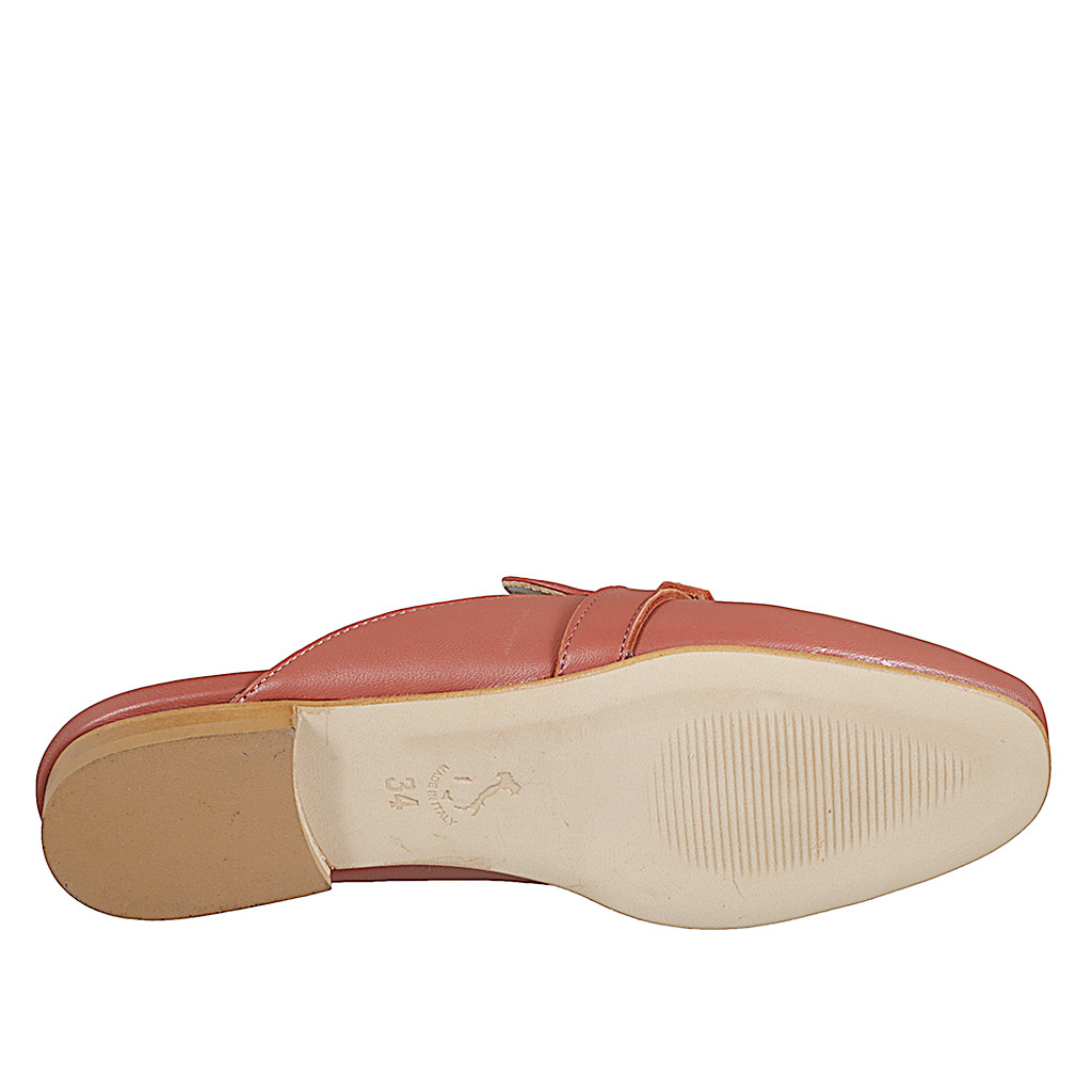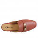 Mule à bout fermé pour femmes en cuir rouge brique avec accessoire doré talon 2