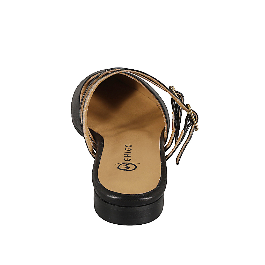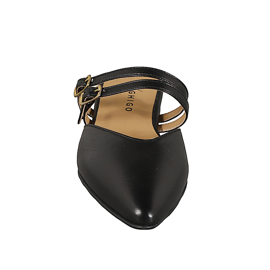 Chaussure ouverte à bout pointu avec courroie à la cheville en cuir rnue talon 2