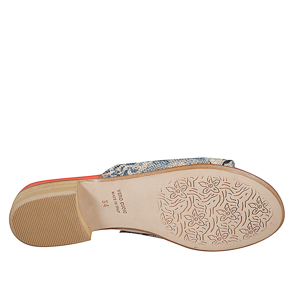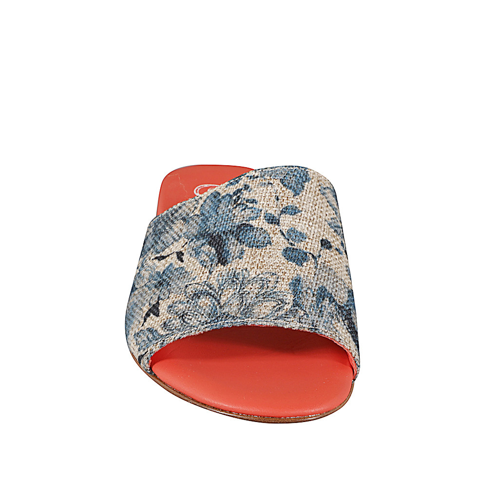 Mules pour femmes avec élastique en toile de jouy beige avec imprimé floral bleu talon 2