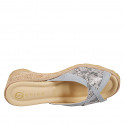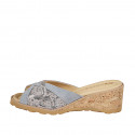 Ouvert Mule pour femmes avec semelle intérieure en mousse à mémoire de forme en daim bleu clair et cuir imprimé talon compensé 5
