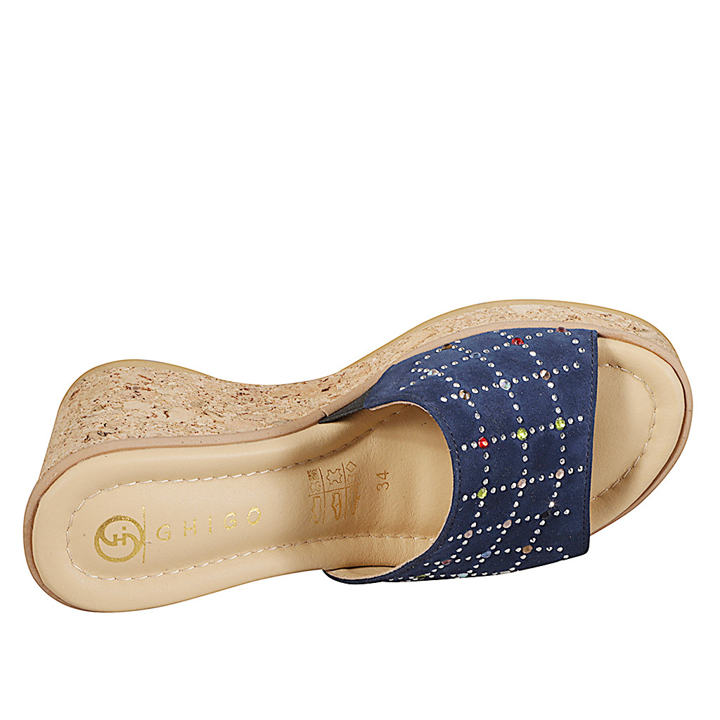Ouvert Mules pour femmes avec semelle intérieure en mousse à mémoire en daim bleu foncé et talon compensé 9