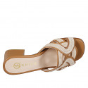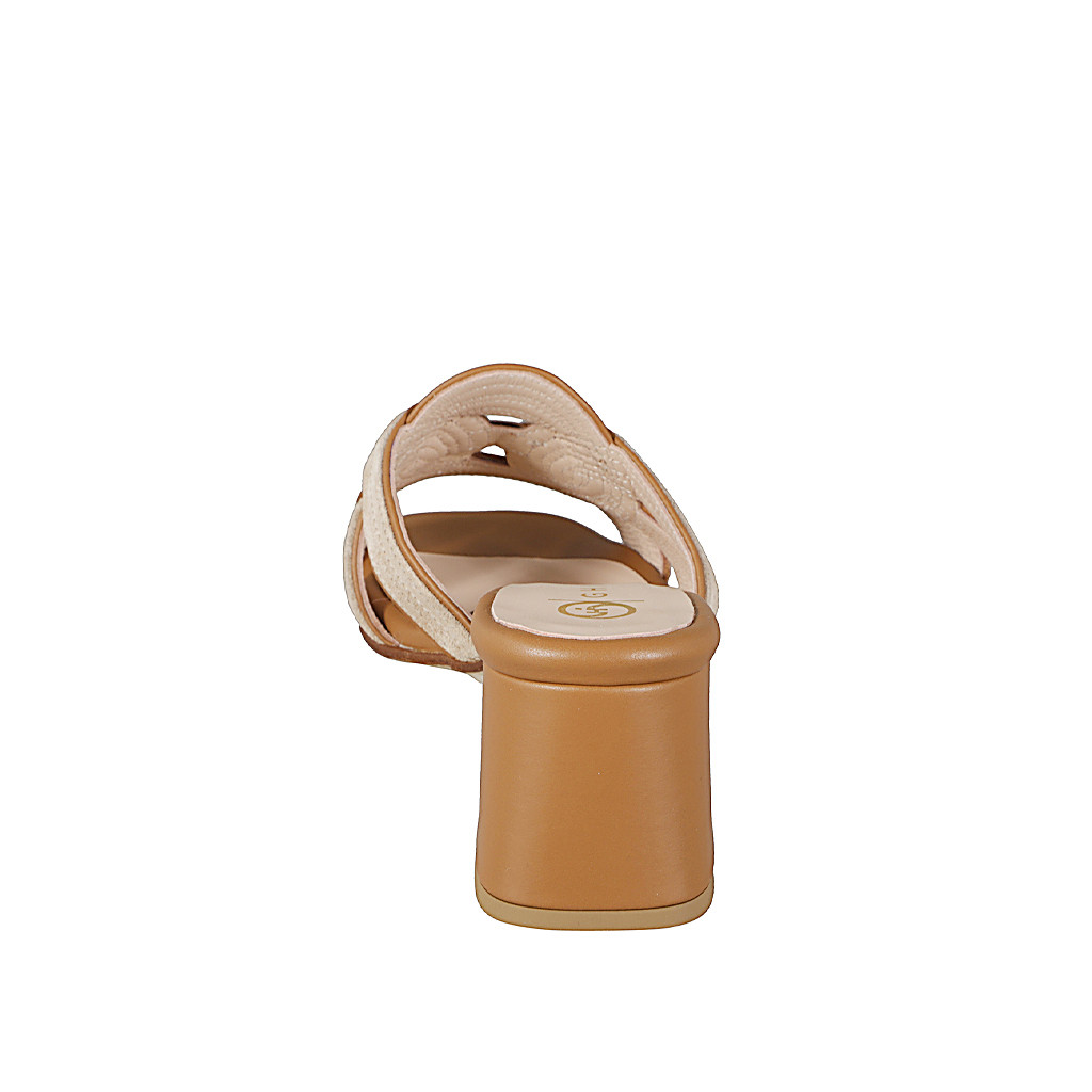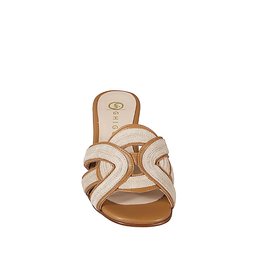 Mule pour femme avec design à lanières croisées en cuir cognac et daim beige et talon 5