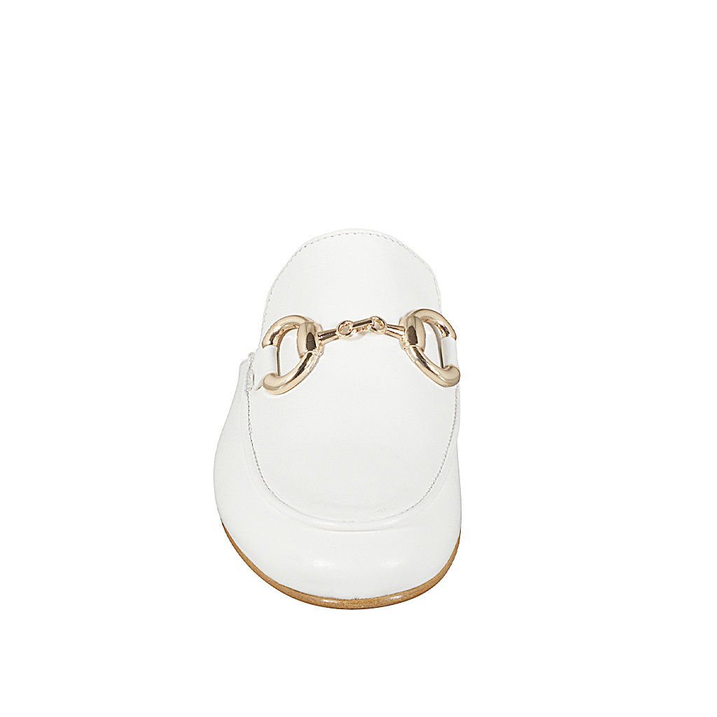 Mules fermées pour femmes avec accessoire doré en cuir ivoire et talon 1