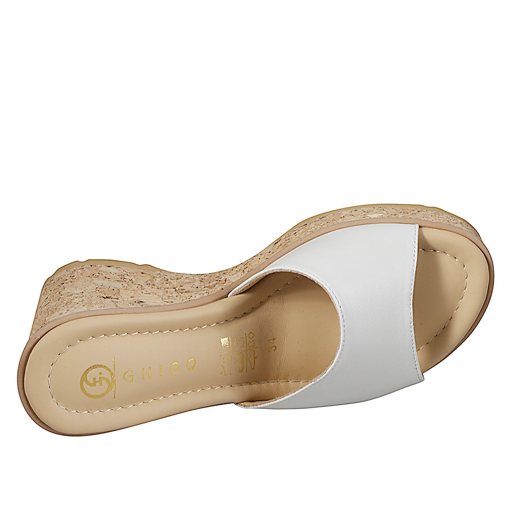 Mules pour femmes avec semelle intérieure en mousse à mémoire de forme en cuir blanc et liège talon compensé 9 - Pointures disponibles:  32, 33, 34