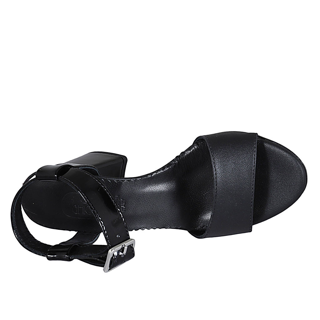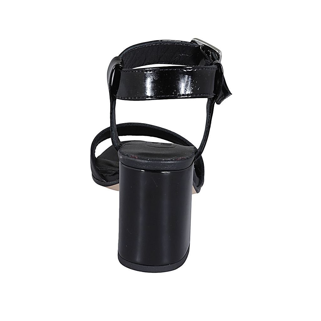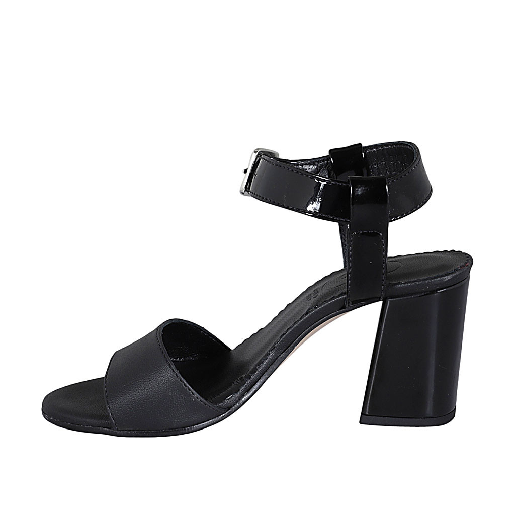Sandale pour femmes avec courroie à la cheville en cuir et cuir verni noir talon 7 - Pointures disponibles:  42, 43
