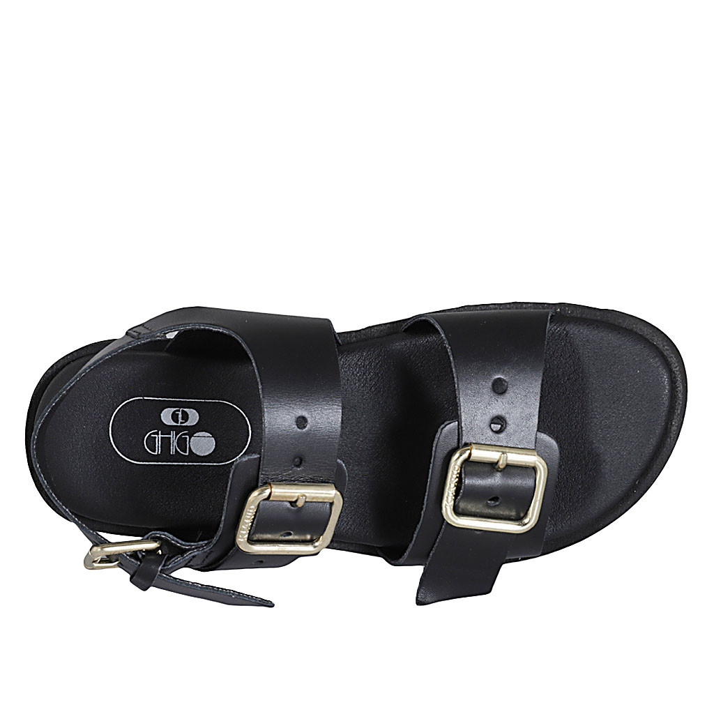 Sandale pour femmes avec boucles réglables en cuir noir talon compensé 2 - Pointures disponibles:  32