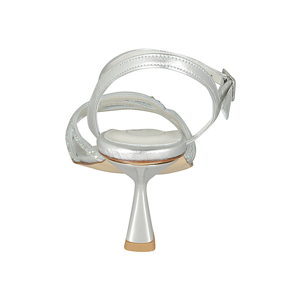 Chaussure ouverte au talon pour femmes en cuir laminé argent talon 6