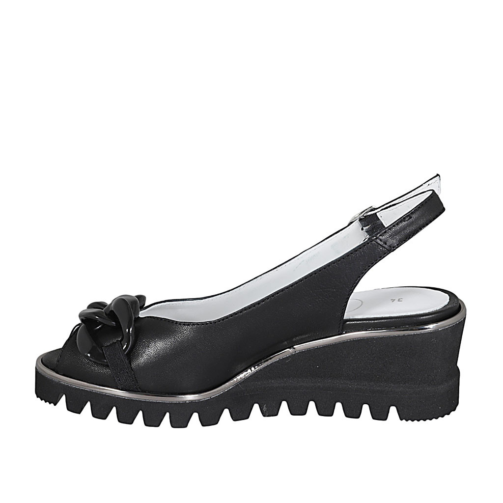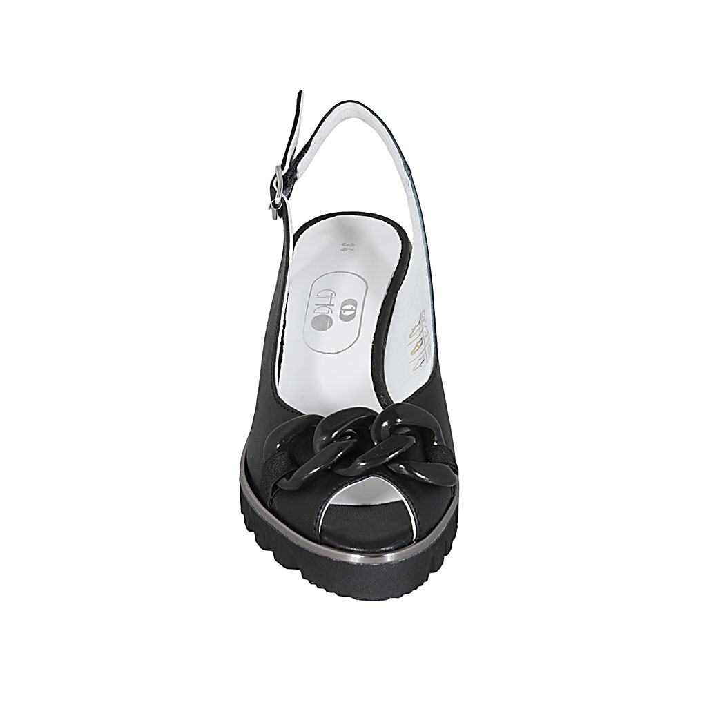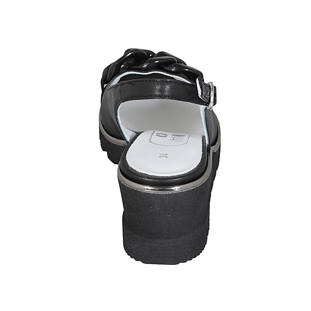 Sandale pour femmes en cuir noir avec chaîne talon compensé 5 - Pointures disponibles:  42, 43
