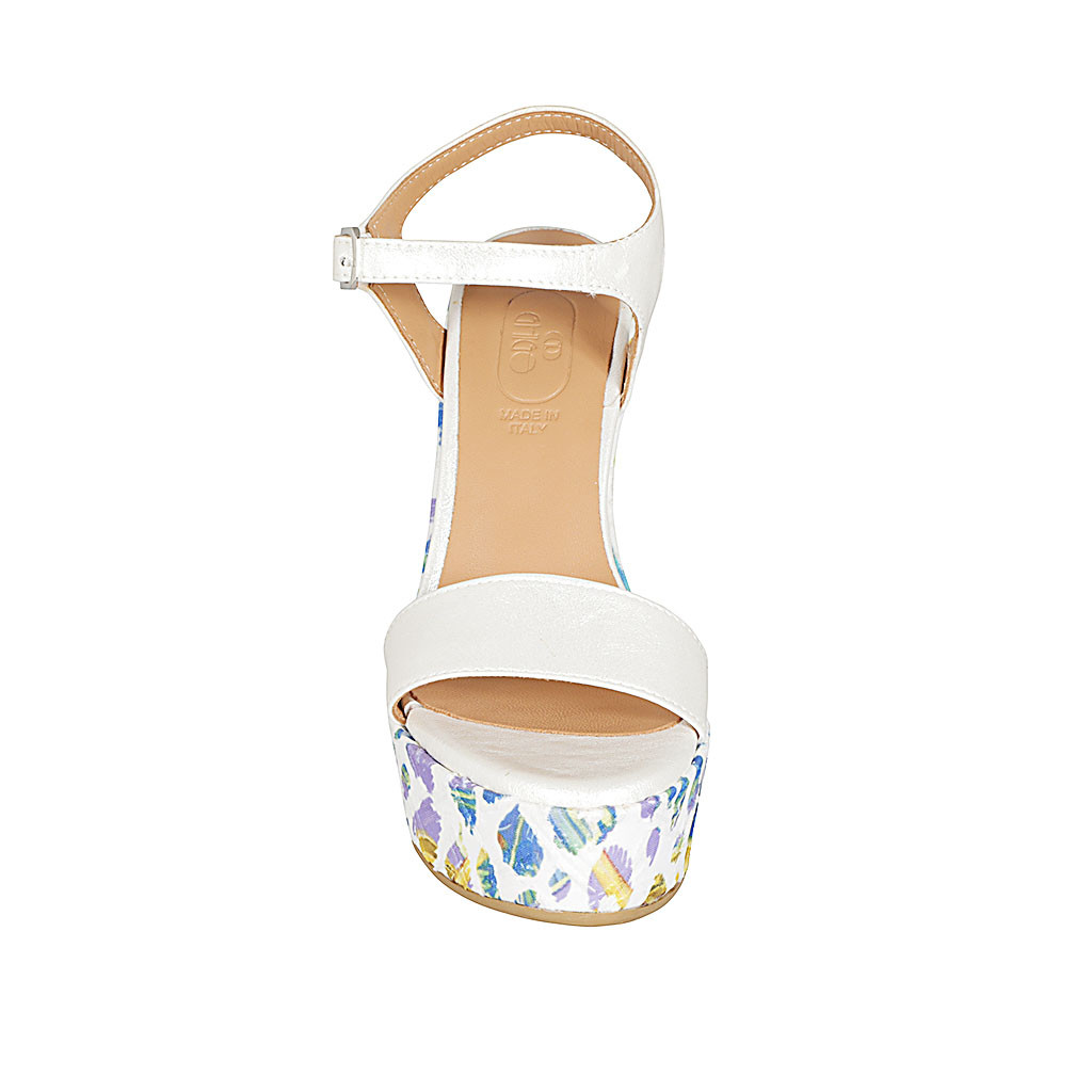 Sandale pour femmes avec plateforme et courroie en cuir lamé blanc et talon compensé imprimé multicouleur 12 - Pointures disponibles:  43