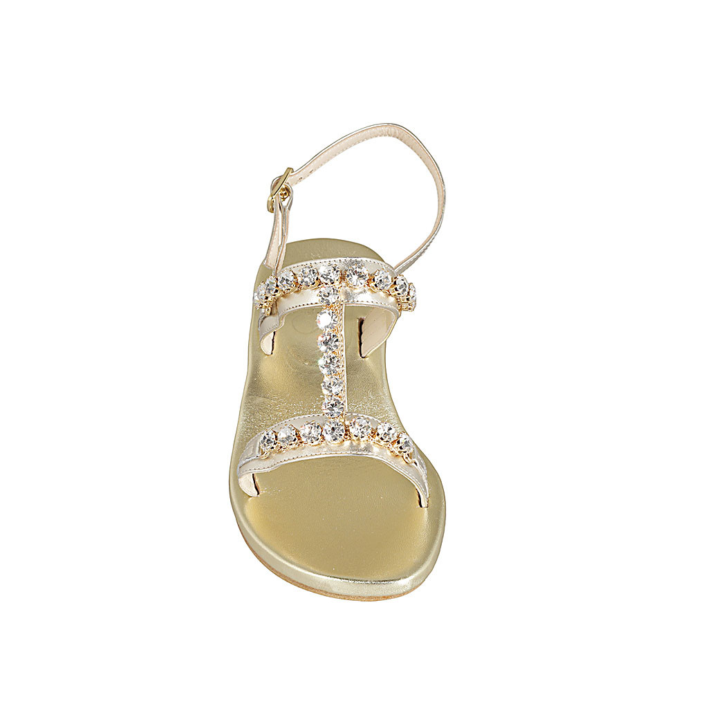 Sandale pour femmes avec strass de cristal doré en cuir lamé platine talon 6 - Pointures disponibles:  42, 45