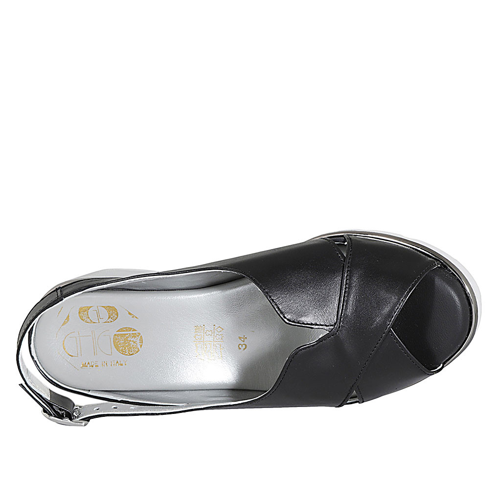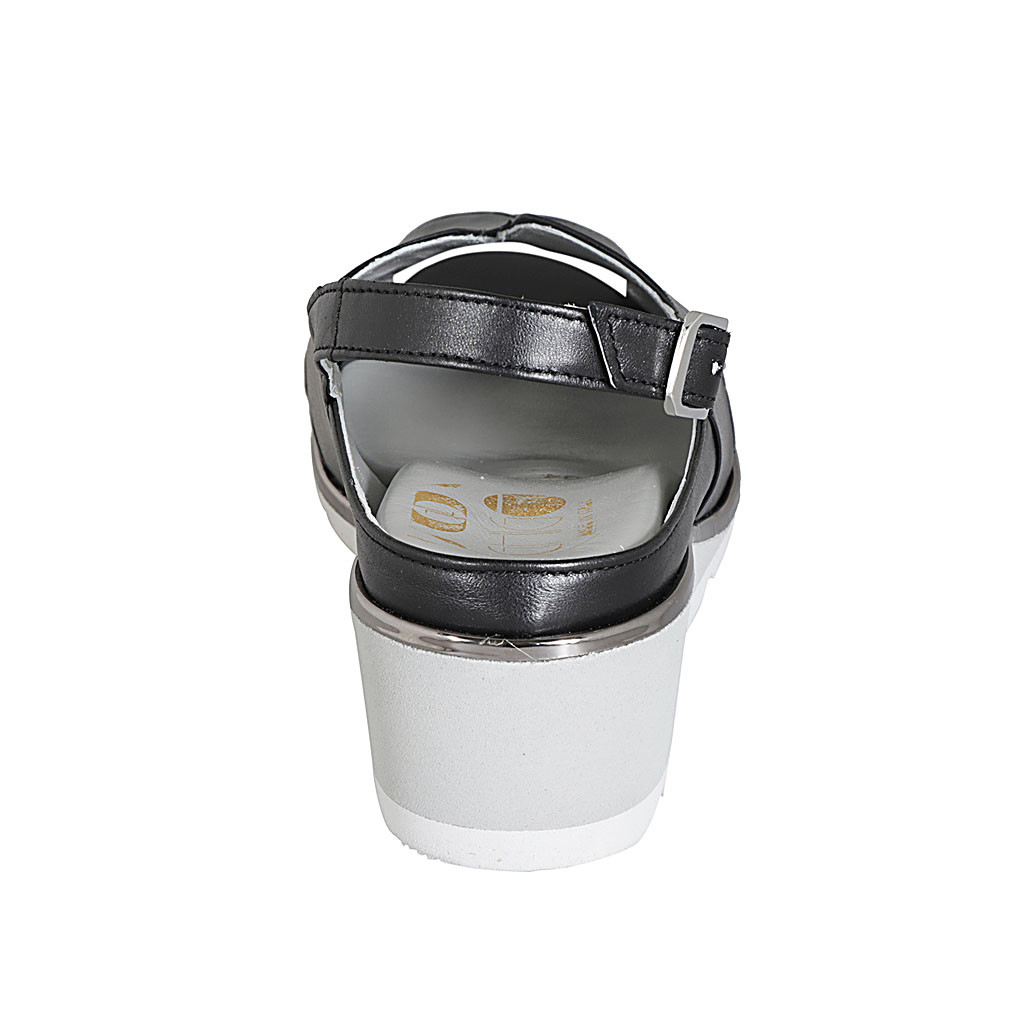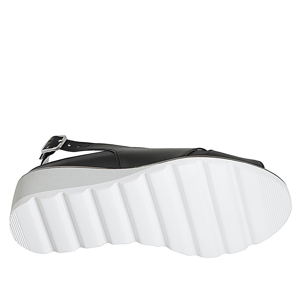 Sandale pour femmes avec semelle interieur amovible en cuir noir talon compensé 5 - Pointures disponibles:  42