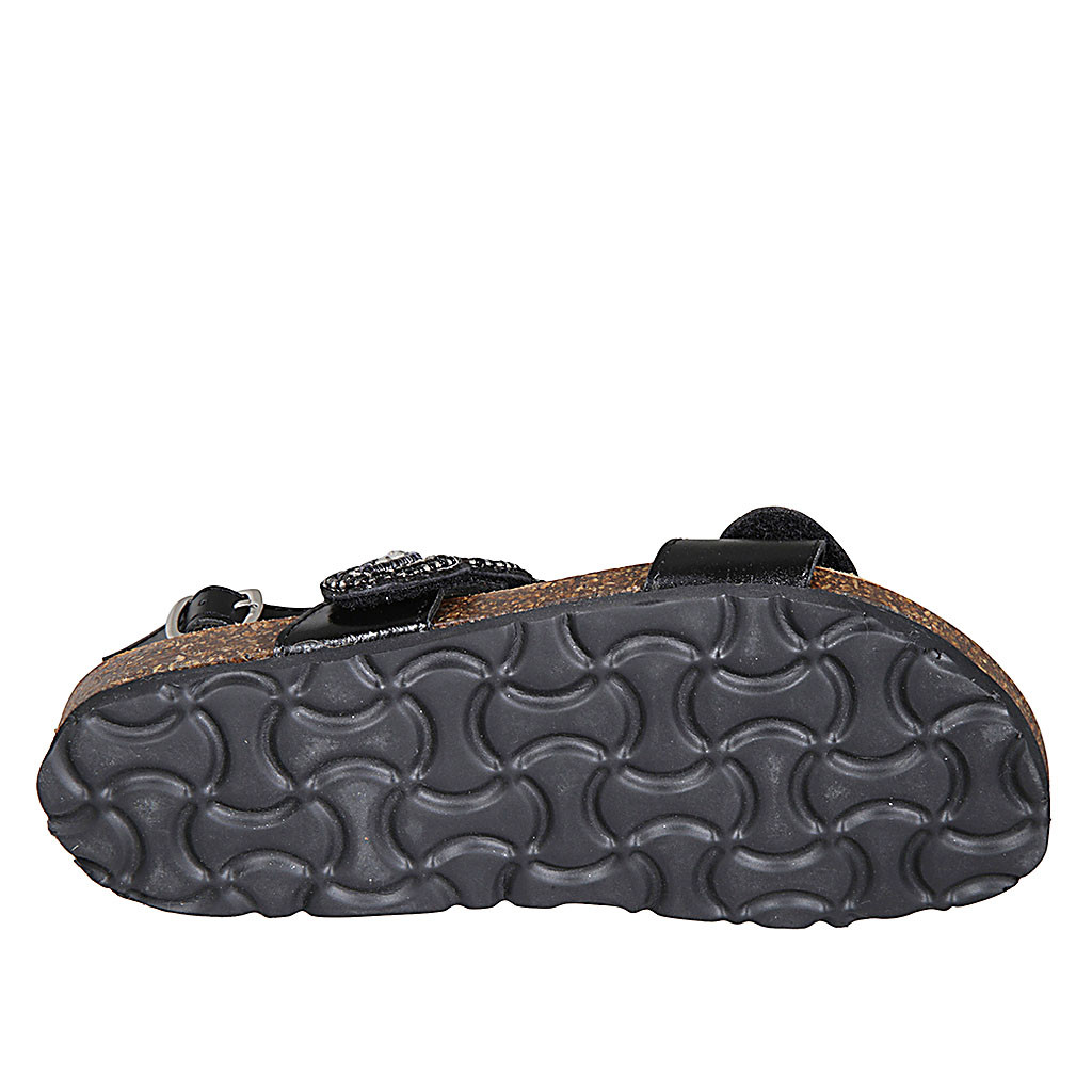 Sandale pour femmes avec bandes croisés en cuir noir talon compensé 3