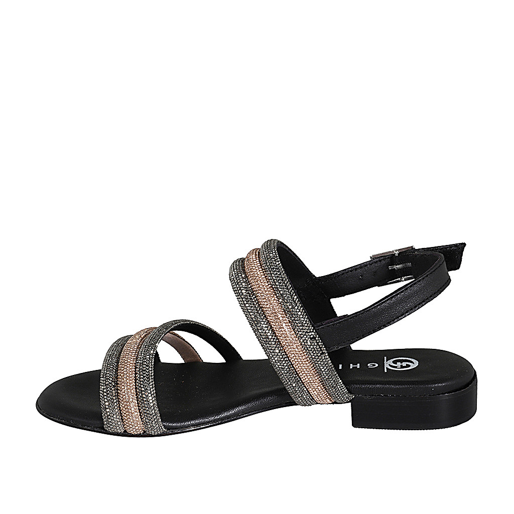 Sandale pour femmes en cuir noir avec strass cuivre et argent talon 2 - Pointures disponibles:  35