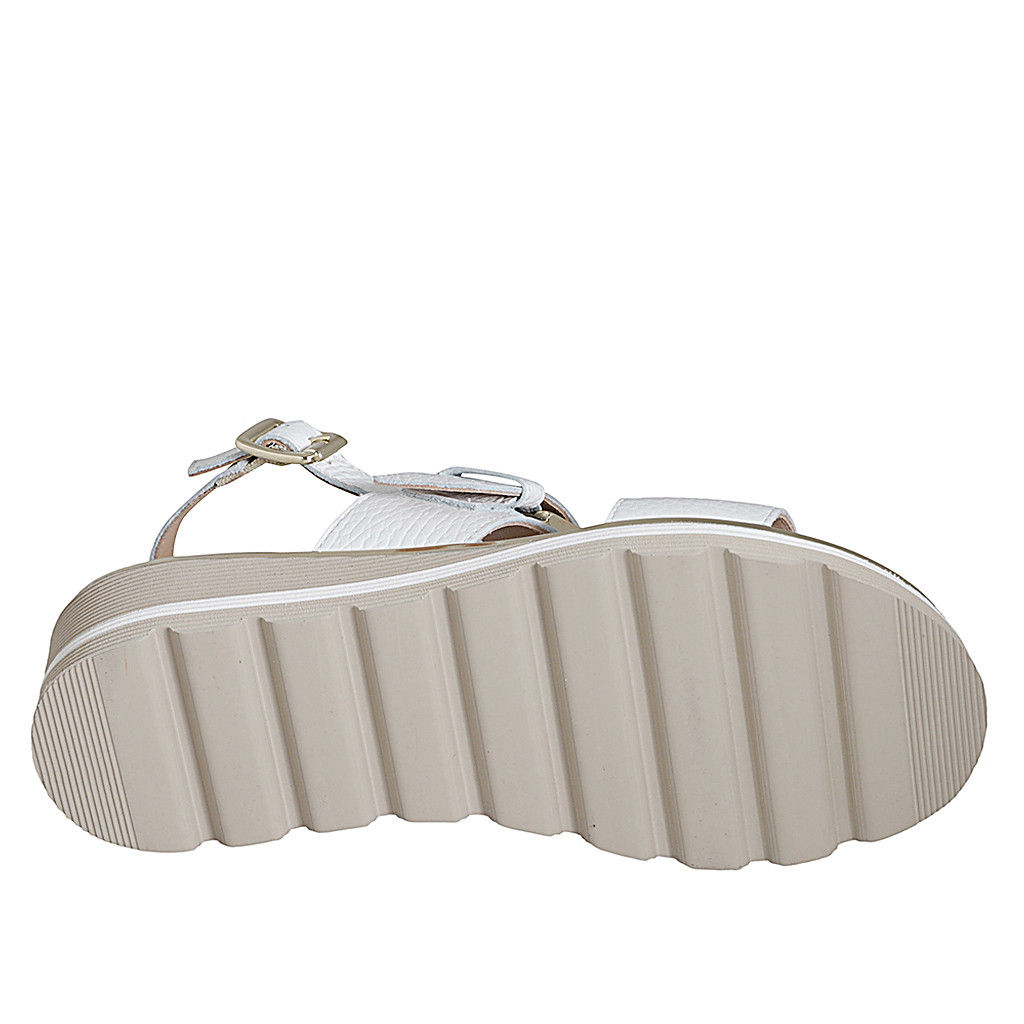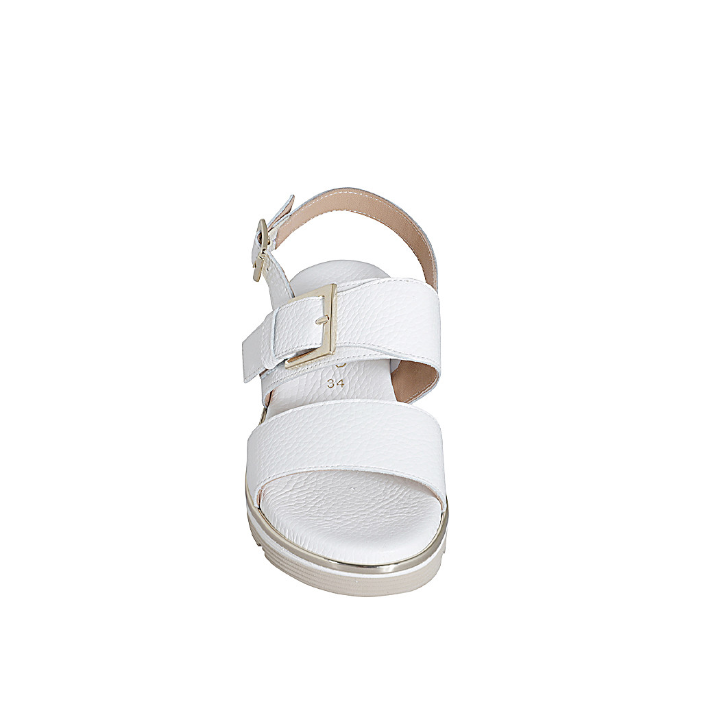 Sandale pour femmes en cuir blanc avec elastique et boucle talon compensé 4 - Pointures disponibles:  35