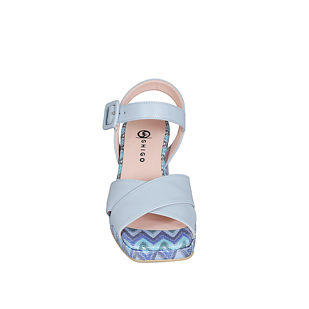 Sandale avec courroie et plateau pour femmes en cuir bleu clair et tissu multicouleur talon 7 - Pointures disponibles:  32, 35, 44, 45