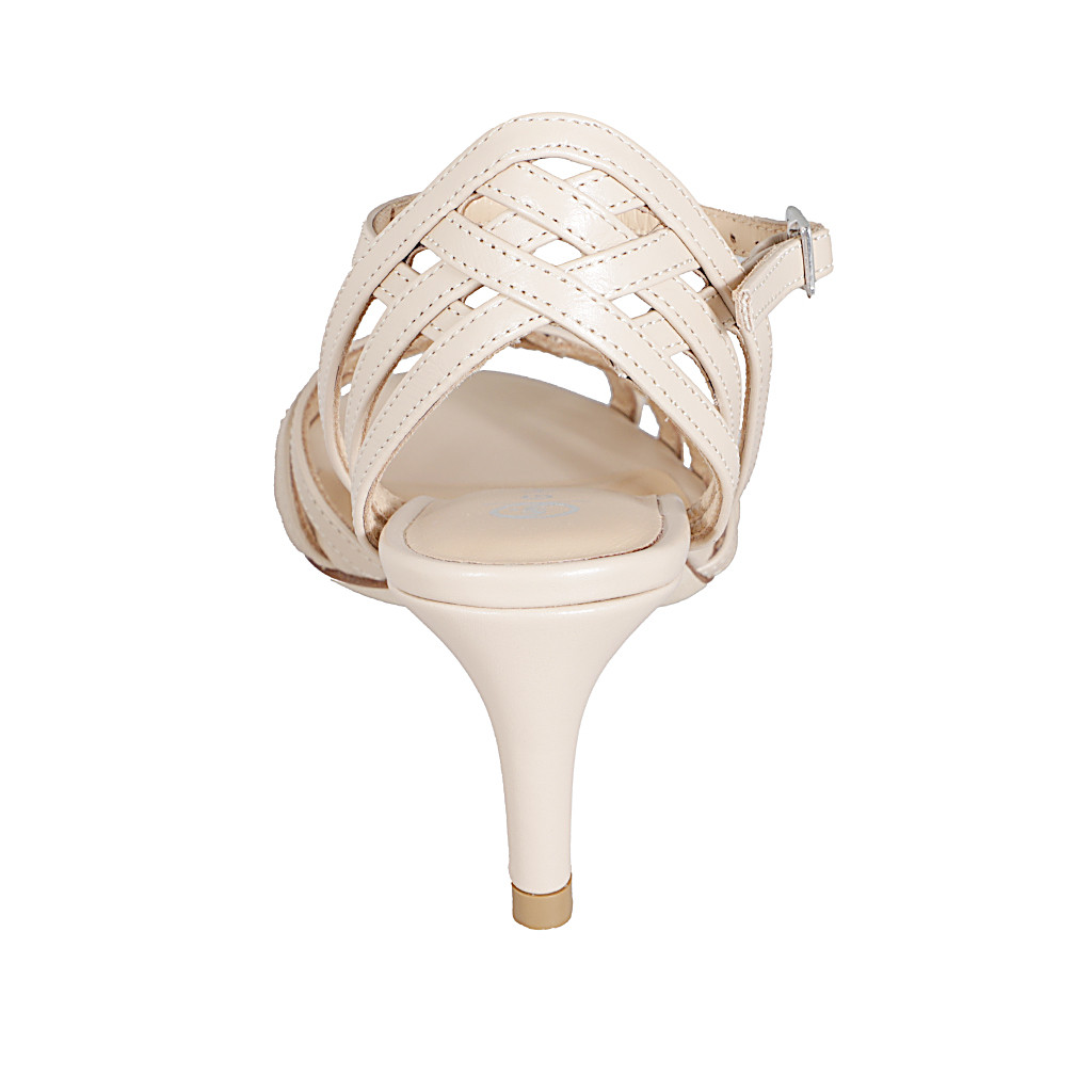 Sandale avec courroie à la cheville et bandes pour femmes en cuir nue talon 5 - Pointures disponibles:  42, 46
