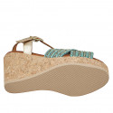 Sandales pour femmes en daim taupe et toile de jouy avec imprimé floral multicolore, talon compensé 7