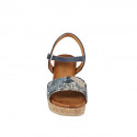 Sandales pour femmes en daim bleu et toile de jouy avec imprimé floral bleu , talon compensé 7