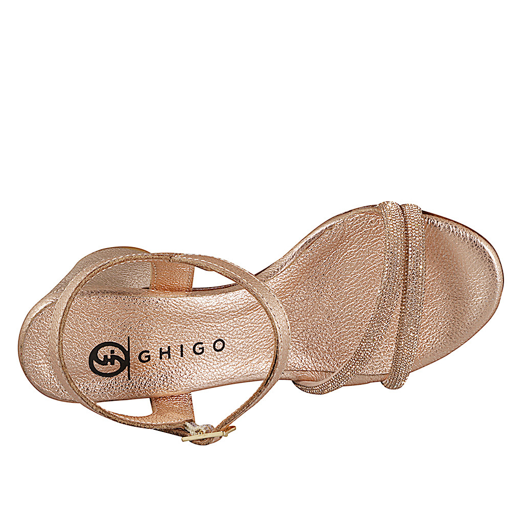 Sandales pour femmes avec élastique et sangle diagonale en cuir cognac, jaune, orange et vert avec talon 2