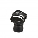 Sandales pour femmes avec courroie à la cheville en cuir noir et lanières avec gris acier strass talon 4