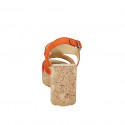 Sandales pour femmes semelle intérieure en mousse à mémoire de forme et courroie et bandes avec velcro, en daim et cuir imprimé taupe, talon compensé 5