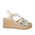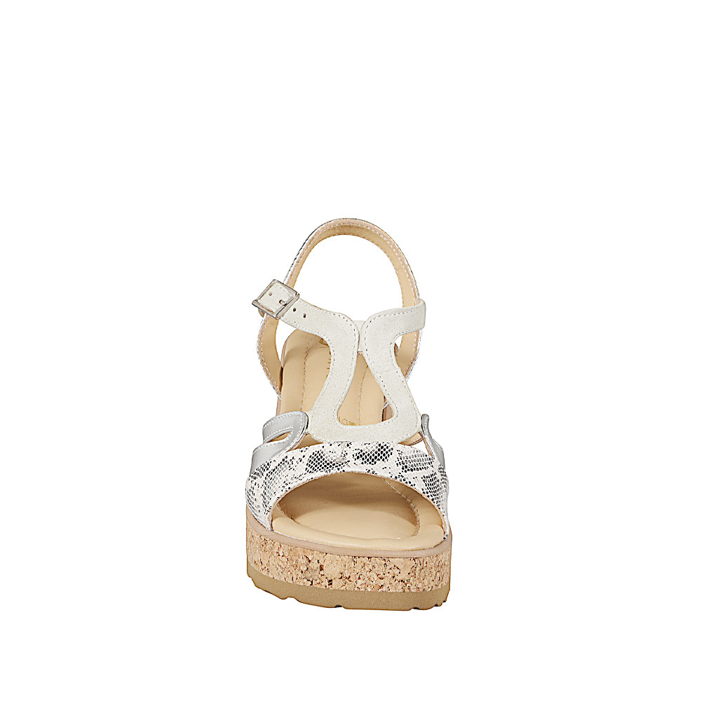 Sandales pour femme avec semelle intérieure en mousse à mémoire de forme, en cuir lamé argent avec talon compensé 7