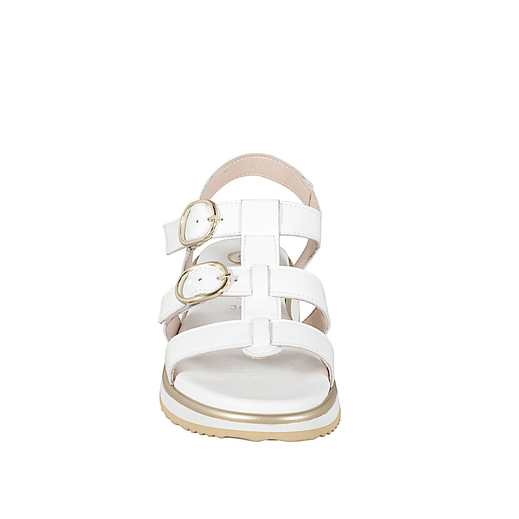 Sandales pour femmes à 2 boucles en cuir blanc avec talon compensé 3 - Pointures disponibles:  32, 33, 34, 35, 42, 43, 44, 45, 46