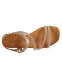 Sandales pour femmes avec courroie à la cheville en cuir cuivre et lanières avec strass talon 2