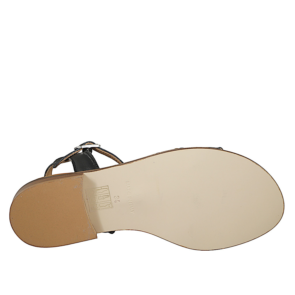 Sandales pour femmes avec courroie à T, en cuir noir avec goujons dorés et talon 2
