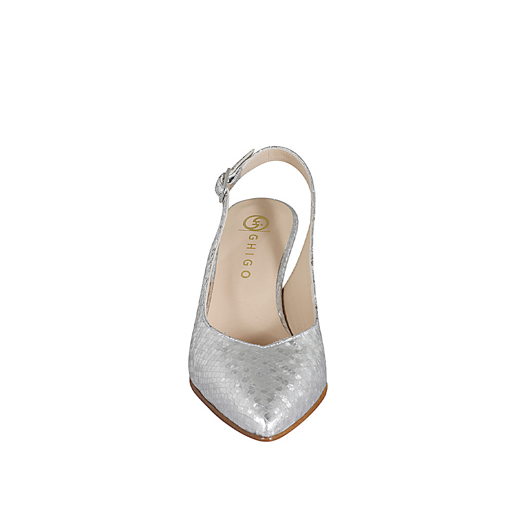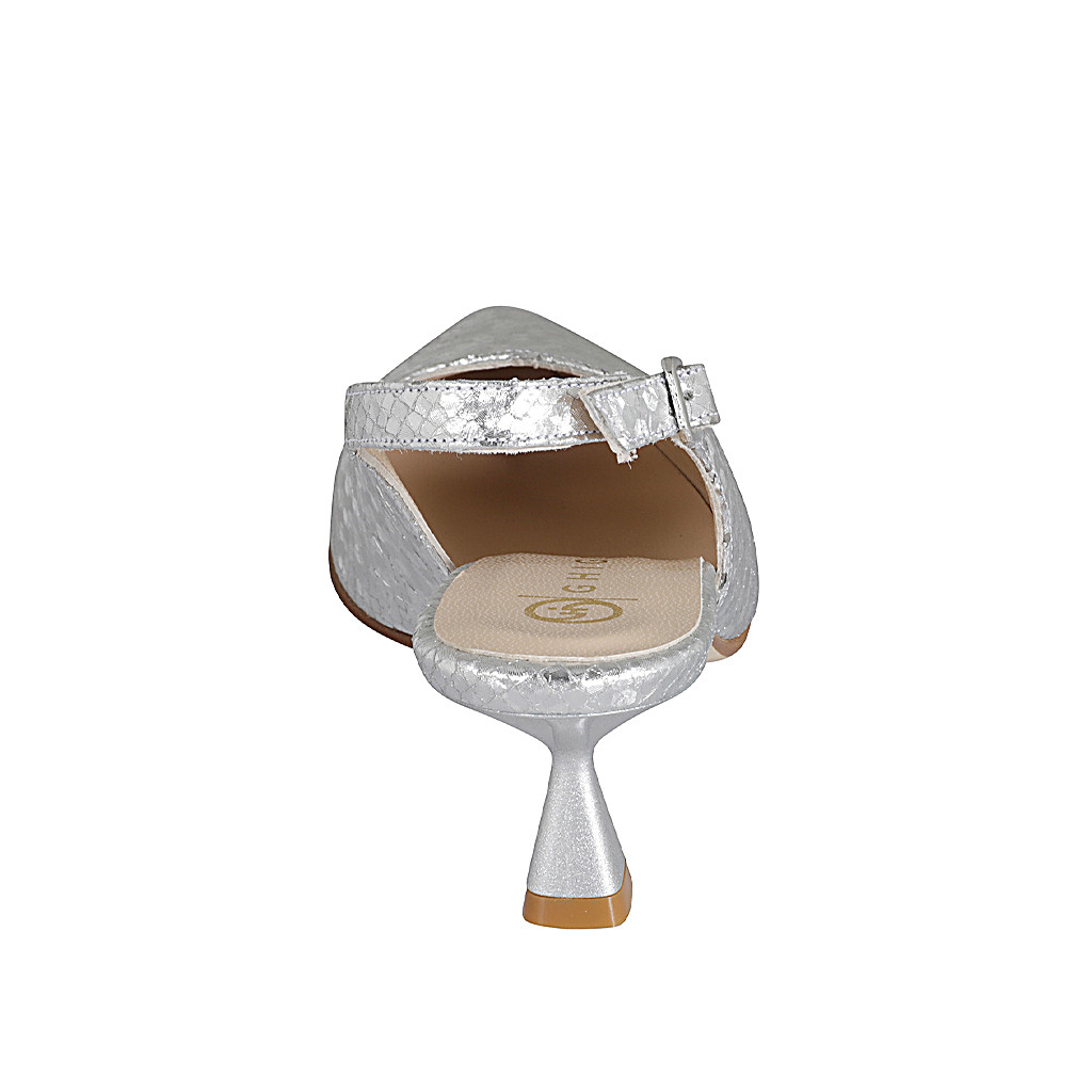 Chaussure ouverte au talon pour femmes en cuir laminé argent talon 6 - Pointures disponibles:  35, 46