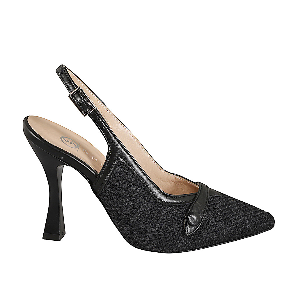 Chaussure ouverte pour femmes à bout pointu avec double courroie en cuir blanc et cuir lamé...