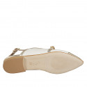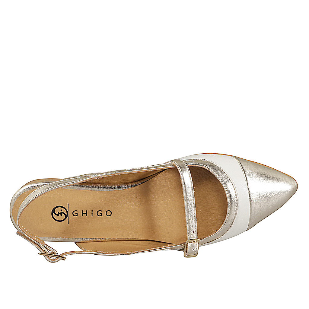 Chaussure à bride arrière pour femmes avec courroie en cuir blanc et bout droit et bords en cuir lamé platine, talon 2