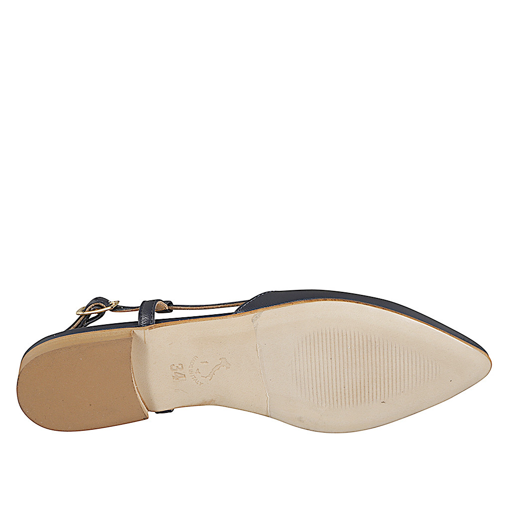Chaussure à bride arrière à bout pointu pour femmes en cuir bleu foncé, talon 2