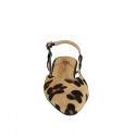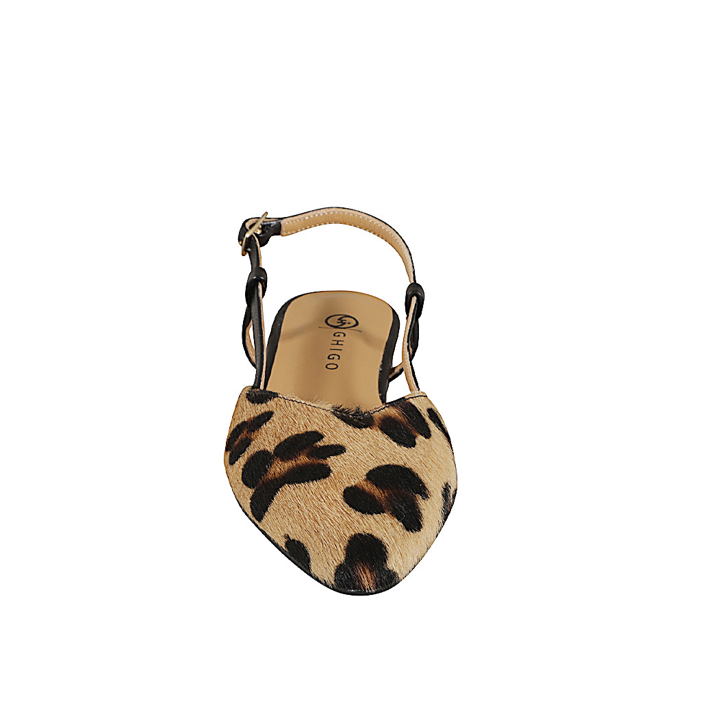 Chaussure à bride arrière à bout pointu pour femmes en veau avec fourrure tachetée et cuir noir, talon 2