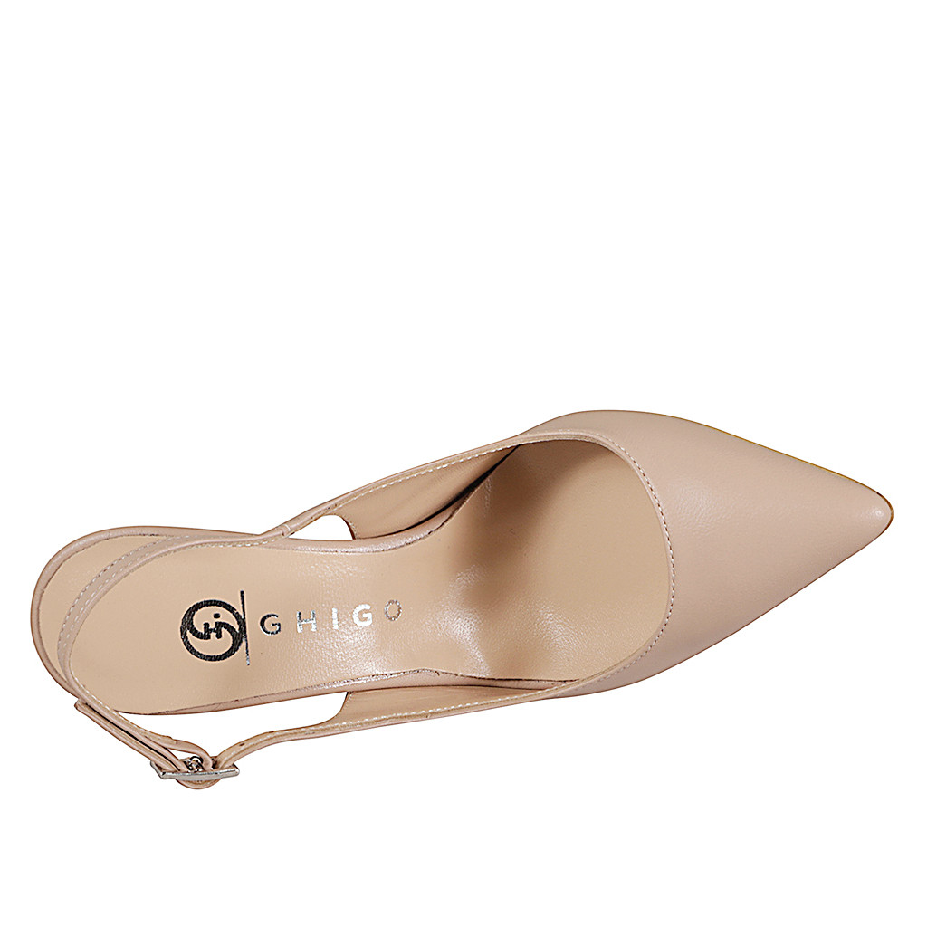 Slingback à bout pointu pour femmes en cuir nue avec talon 9