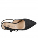 Slingback à bout pointu pour femmes avec courroie avec élastique en tissu tressé noir et cuir noir, talon 7