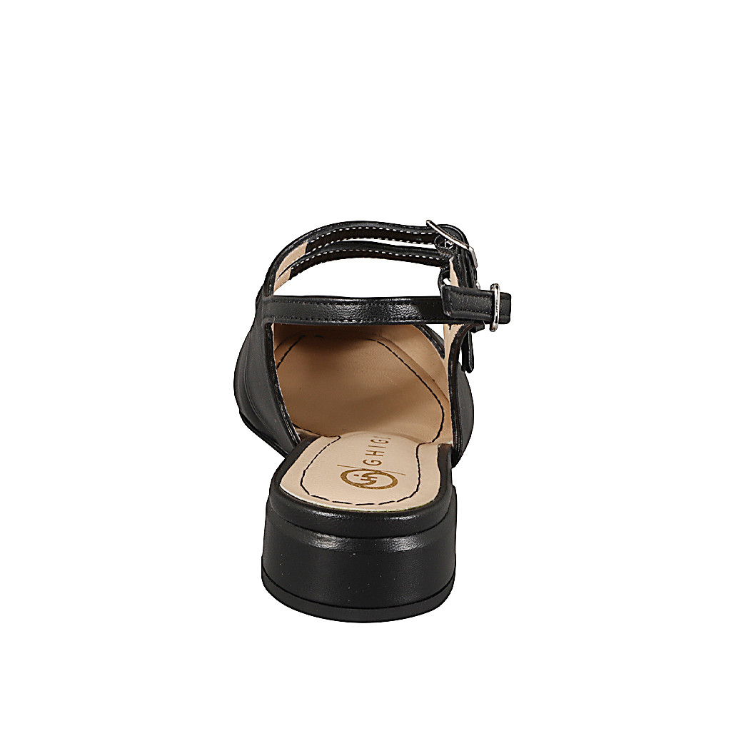 Slingback à bout droit pour femmes style Mary Jane avec double courroie en cuir noir et talon 3