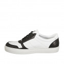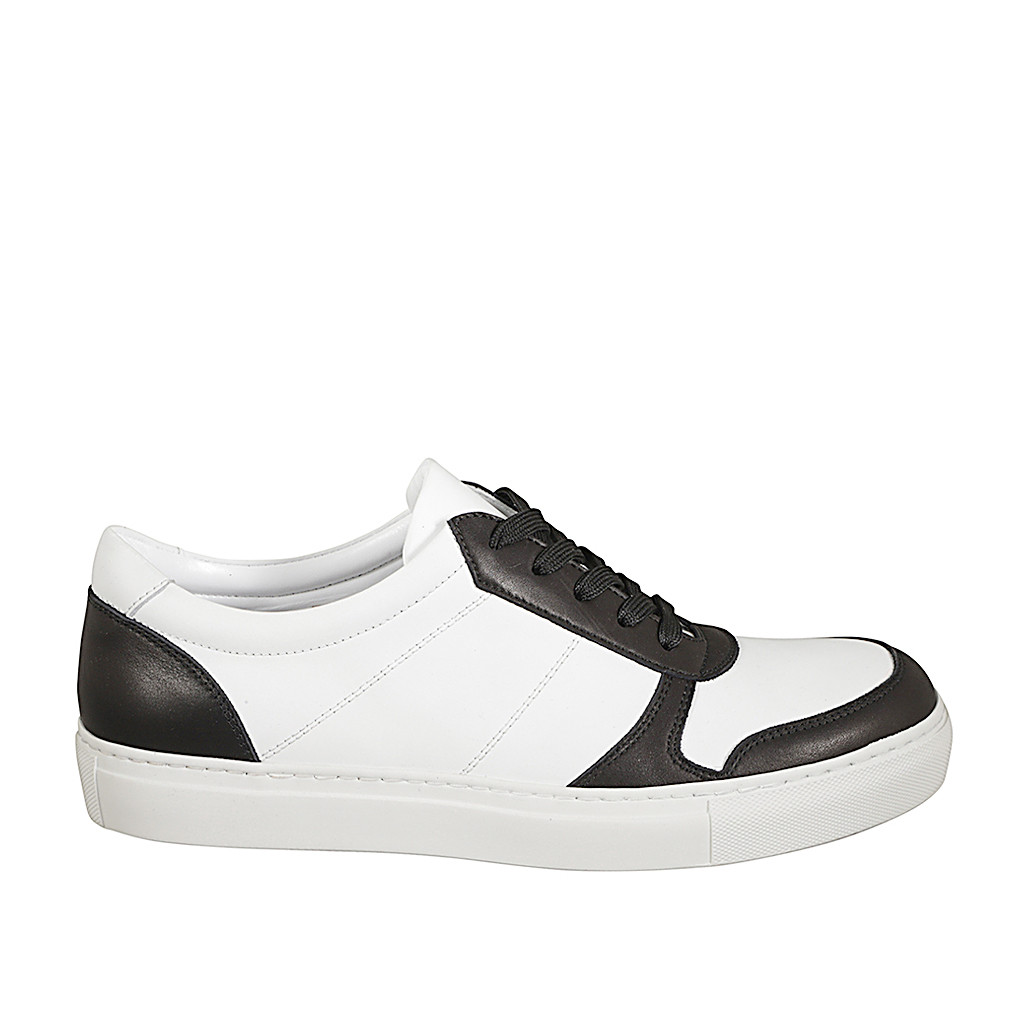 Sneaker à lacets pour femme avec semelle amovible en cuir blanc et noir talon compensé 3