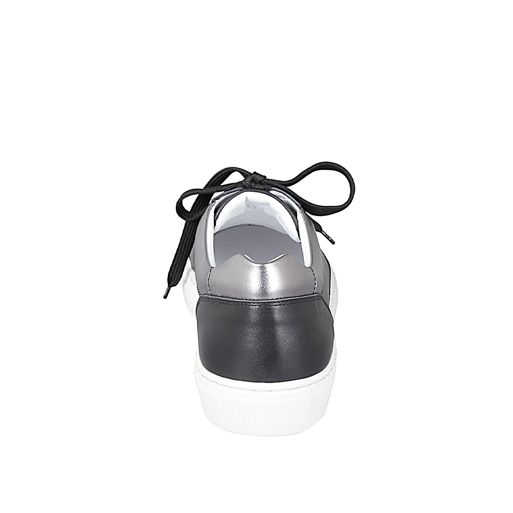 Sneaker à lacets pour femme avec semelle amovible en cuir rose et cuir lamé platine talon compensé 3
