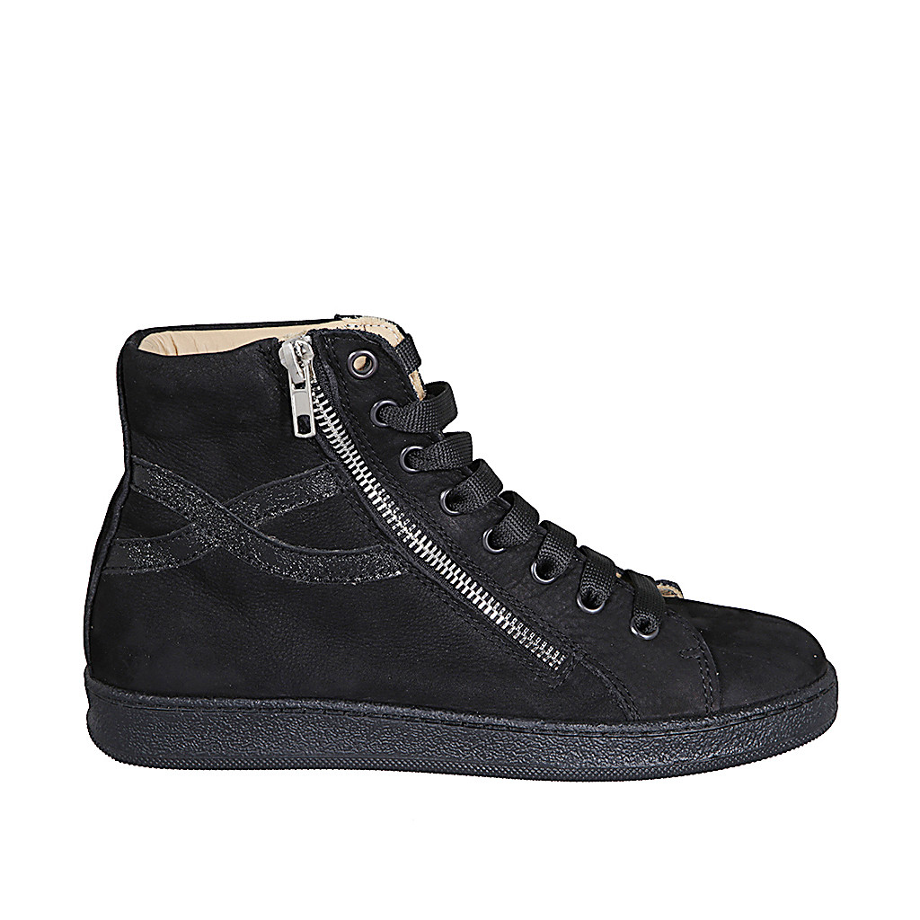 Sneaker pour femme en nubuck noir avec lacets, fermetures éclair et semelle intérieure amovible talon compensé 2