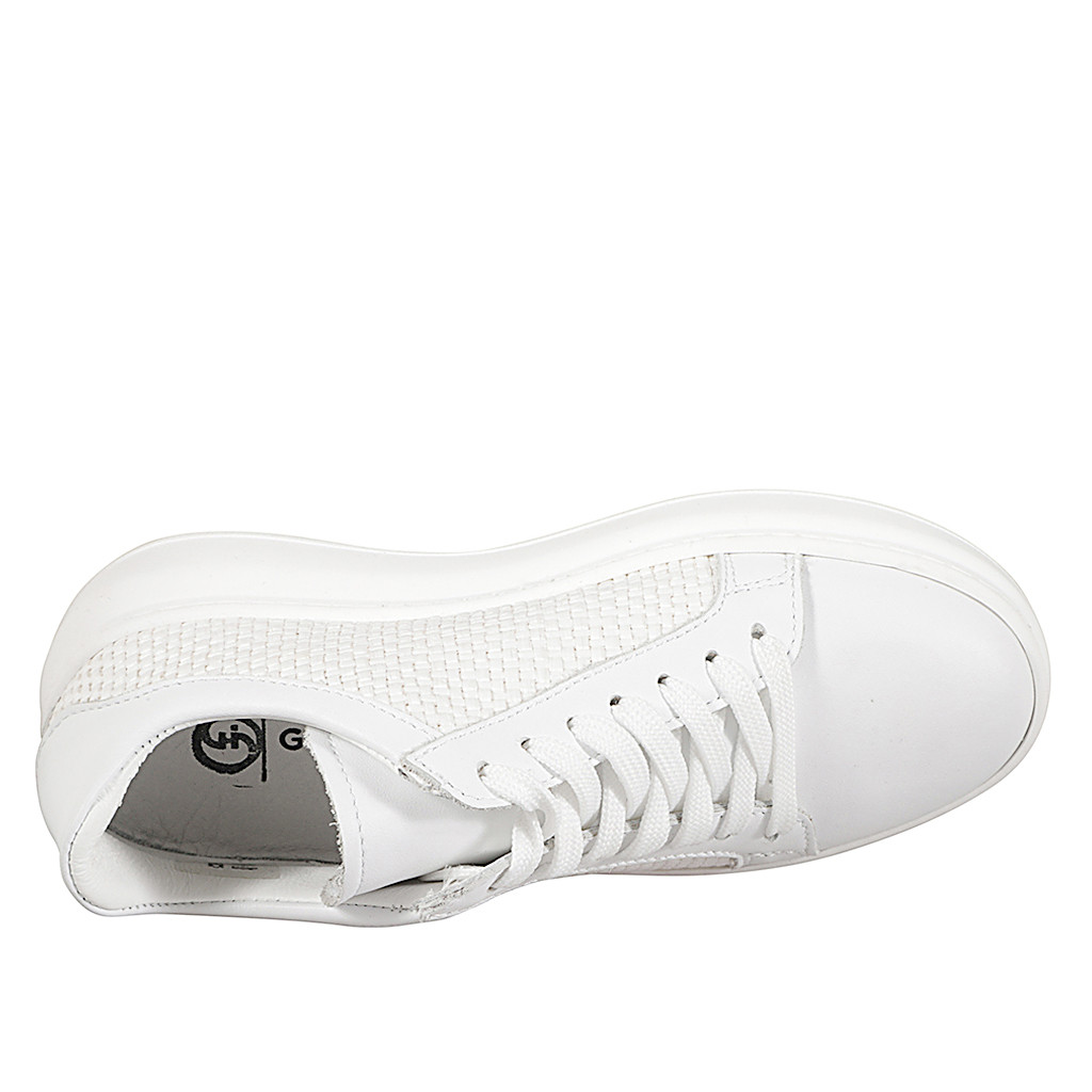 Chaussure à lacets pour femmes avec semelle amovible en cuir blanc et tissu en raphia tressé talon compensé 4 - Pointures disponibles:  32, 33, 34, 35, 42, 43, 44, 45, 46