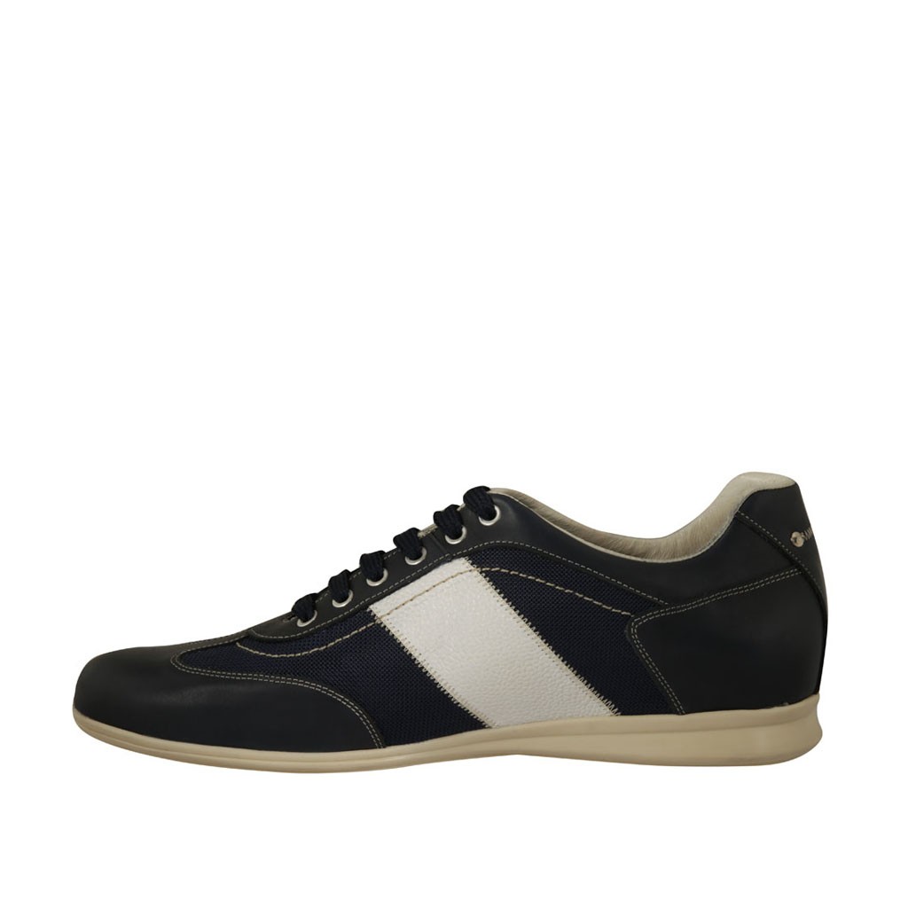Sandale pour hommes avec fermeture velcro en cuir et tissu bleu