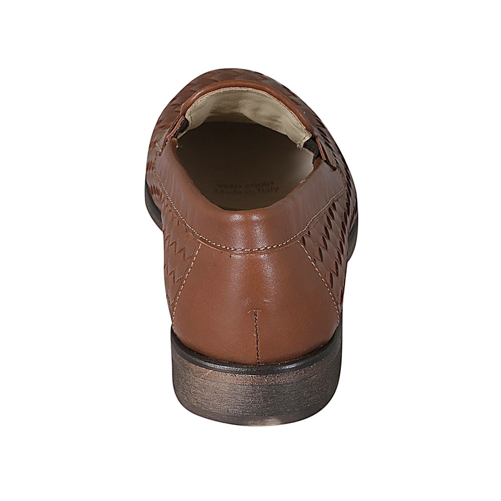 Mocassin pour hommes en cuir et cuir tressé cognac - Pointures disponibles:  46, 47, 49, 50