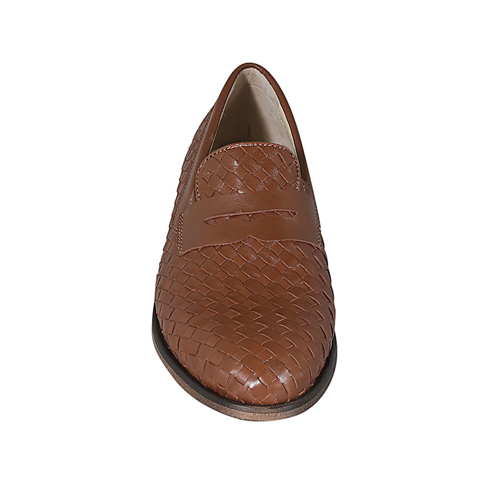 Mocassin pour hommes en cuir et cuir tressé cognac