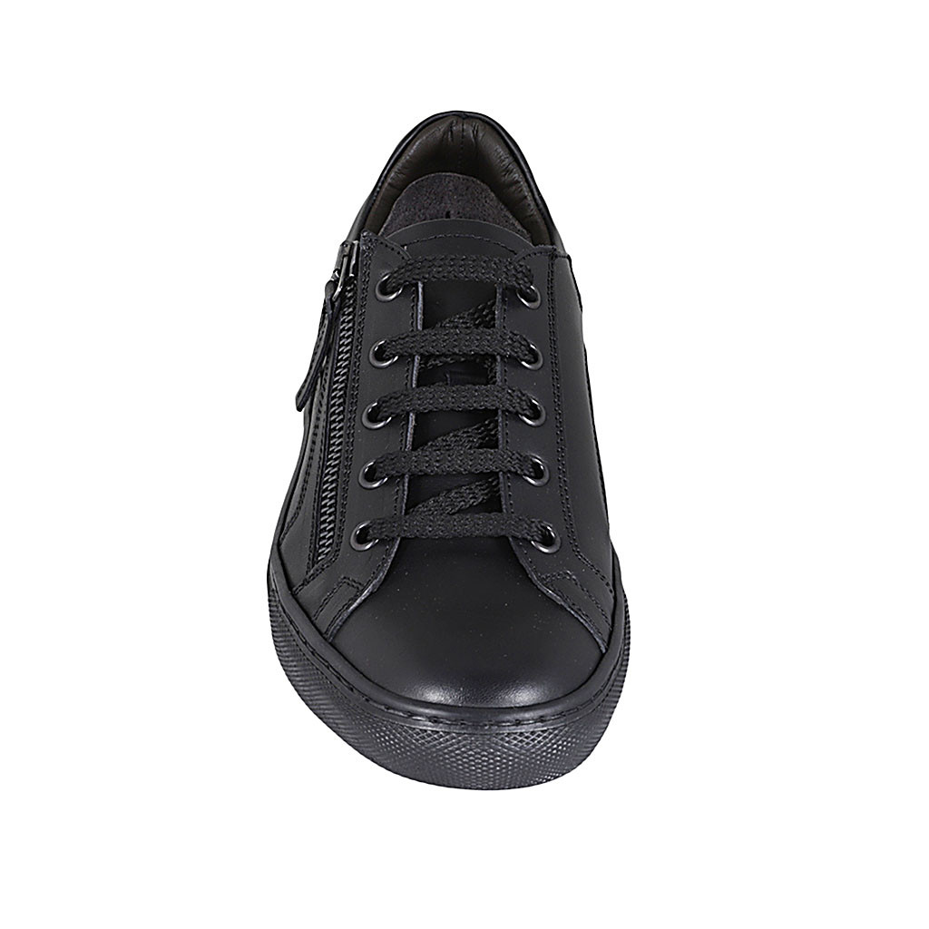 Chaussure sportif à lacets avec semelle amovible et fermeture éclair pour hommes en cuir noir - Pointures disponibles:  36, 37, 38, 47, 54