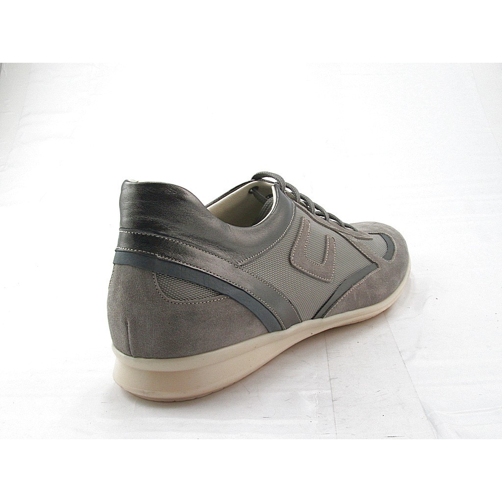 Chaussure à lacets pour hommes, en daim beige sable, cuir gris et tissu, semelle en caoutchouc, doublure en cuir.