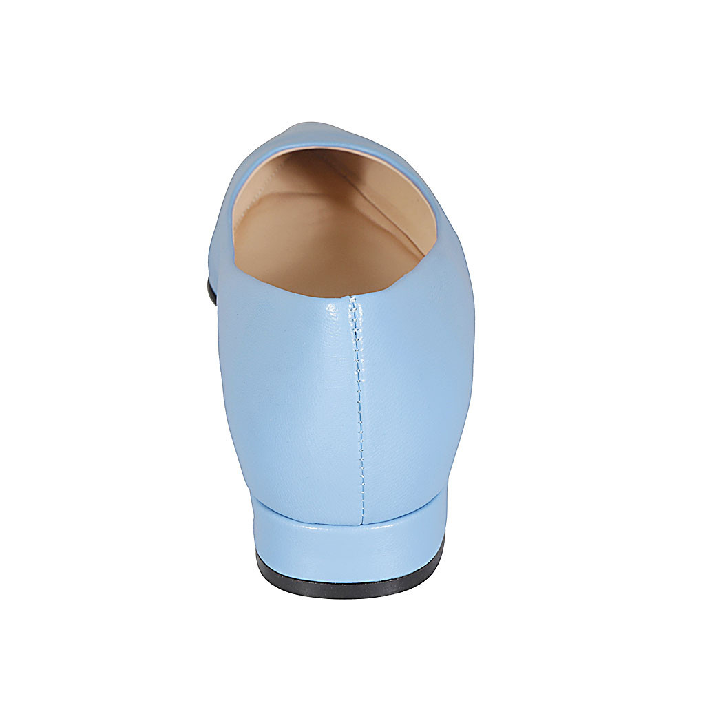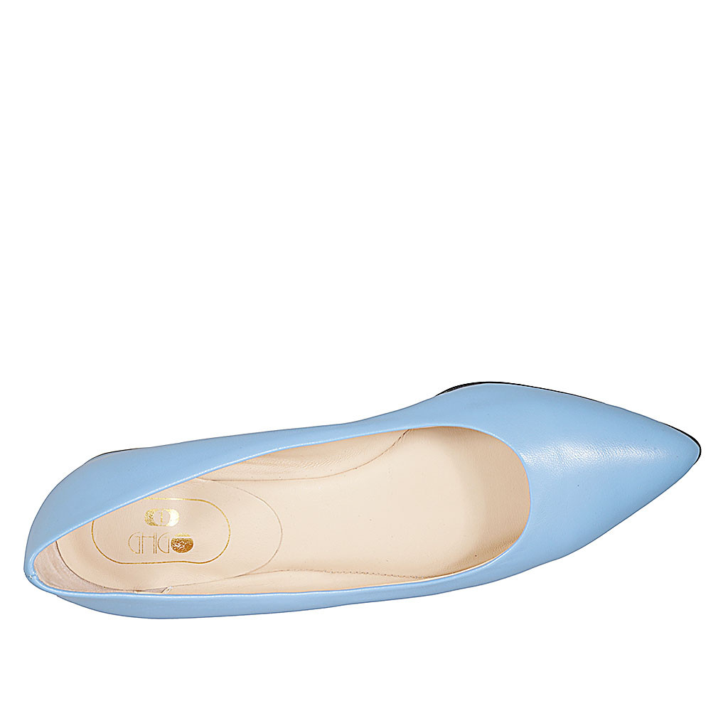 Décolleté a punta da donna in pelle azzurra tacco 2