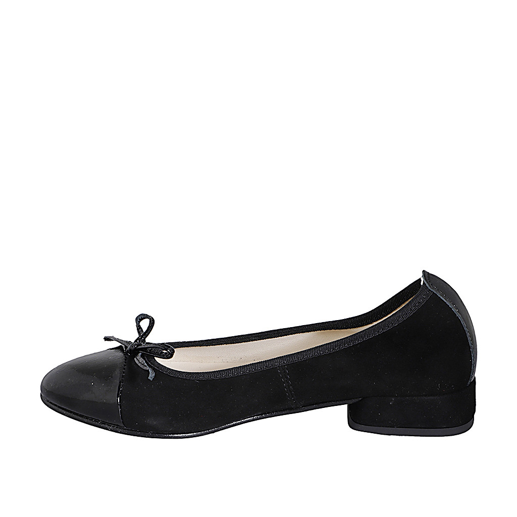 Ballerina da donna a punta con fiocco e puntale in camoscio e vernice nera tacco 2 - Misure disponibili: 32, 33, 35, 42, 43